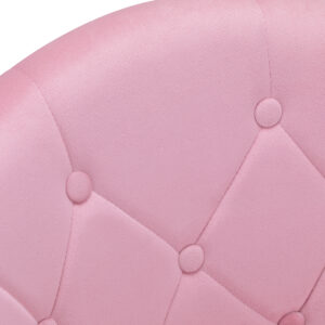 Luksusowe wykończenie sprawia, że mebel wpada w oko. Przyjemne w dotyku, welwetowe obicie w odcieniach różu wraz z ozdobnym pikowaniem nadają mu wyjątkowego charakteru. Stabilna, okrągła podstawa w odcieniach złota dodaje elegancji, idealnie komponując się z welwetem. Estetyka wykonania, komfort użytkowania, ergonomicznie wyprofilowane oparcie i estetyczne pikowanie sprawiają, że krzesło spełni wymagania nawet najbardziej wymagających użytkowników.