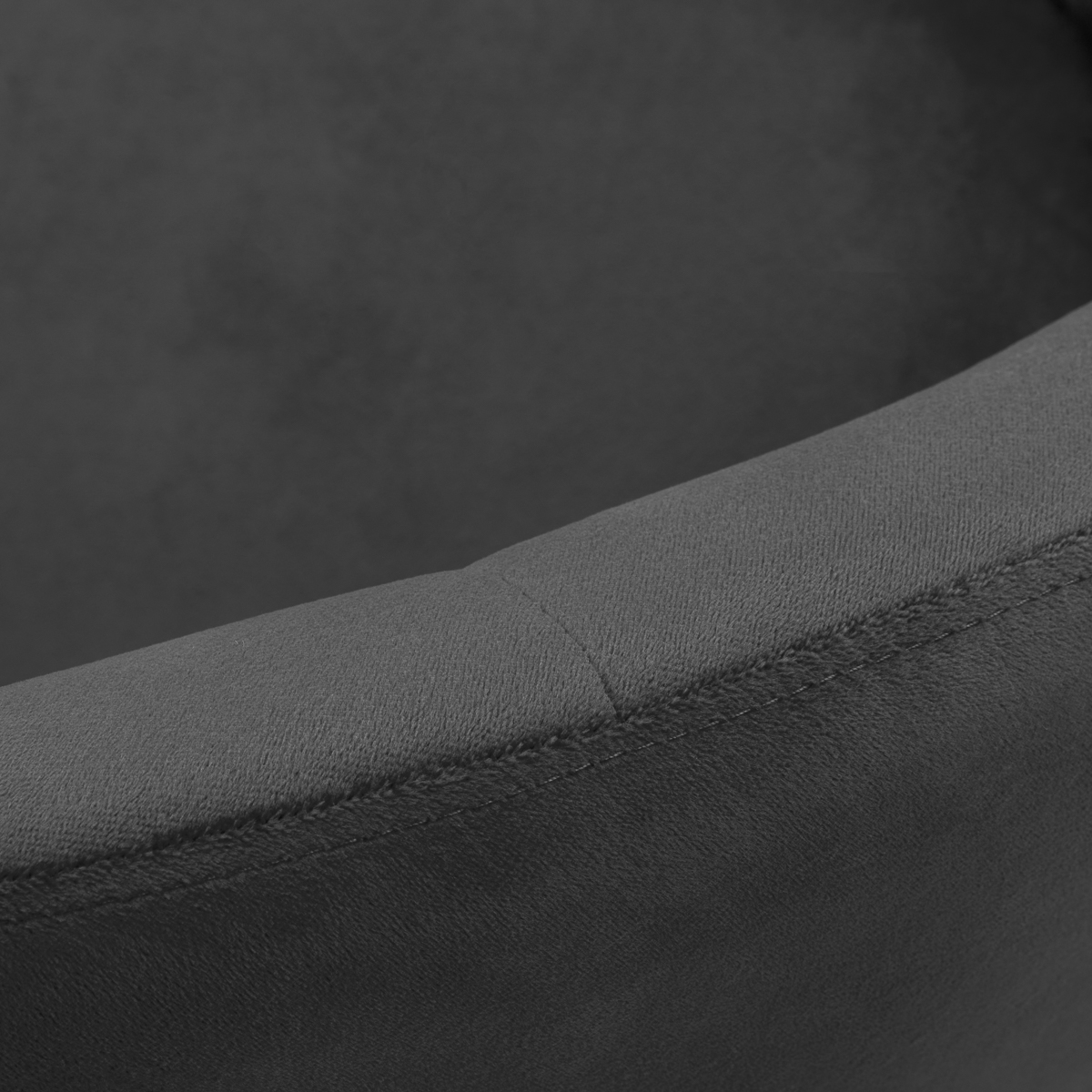Luksusowe wykończenie sprawia, że mebel wpada w oko. Przyjemne w dotyku, welwetowe obicie w odcieniach szarości wraz z ozdobnym pikowaniem nadają mu wyjątkowego charakteru. Stabilna, okrągła podstawa w odcieniach złota dodaje elegancji, idealnie komponując się z welwetem. Estetyka wykonania, komfort użytkowania, ergonomicznie wyprofilowane oparcie i estetyczne pikowanie sprawiają, że krzesło spełni wymagania nawet najbardziej wymagających użytkowników.