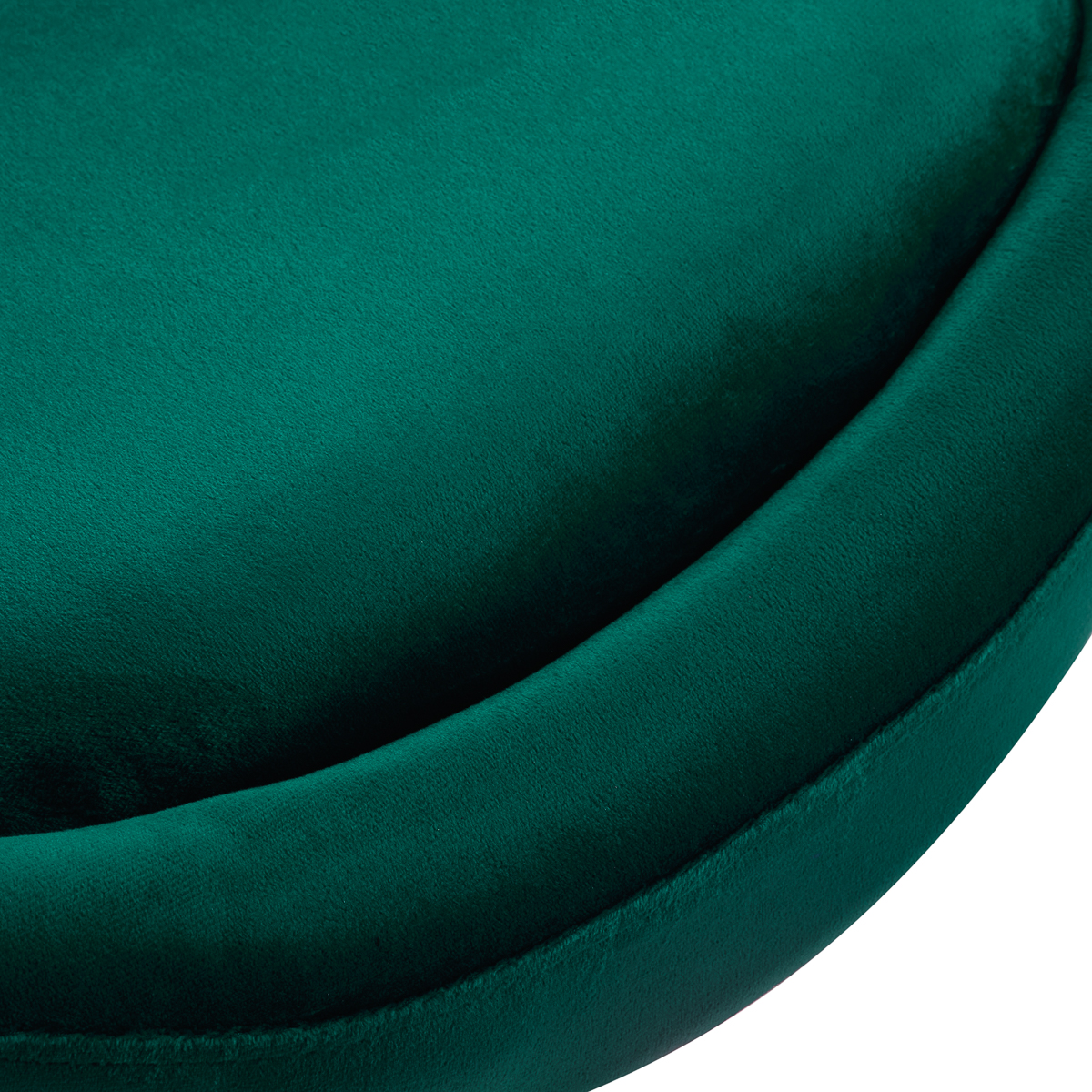 Luksusowe wykończenie sprawia, że mebel wpada w oko. Przyjemne w dotyku, welwetowe obicie w odcieniach zieleni wraz z ozdobnym pikowaniem nadają mu wyjątkowego charakteru. Stabilna, okrągła podstawa w odcieniach złota dodaje elegancji, idealnie komponując się z welwetem. Estetyka wykonania, komfort użytkowania, ergonomicznie wyprofilowane oparcie i estetyczne pikowanie sprawiają, że krzesło spełni wymagania nawet najbardziej wymagających użytkowników.