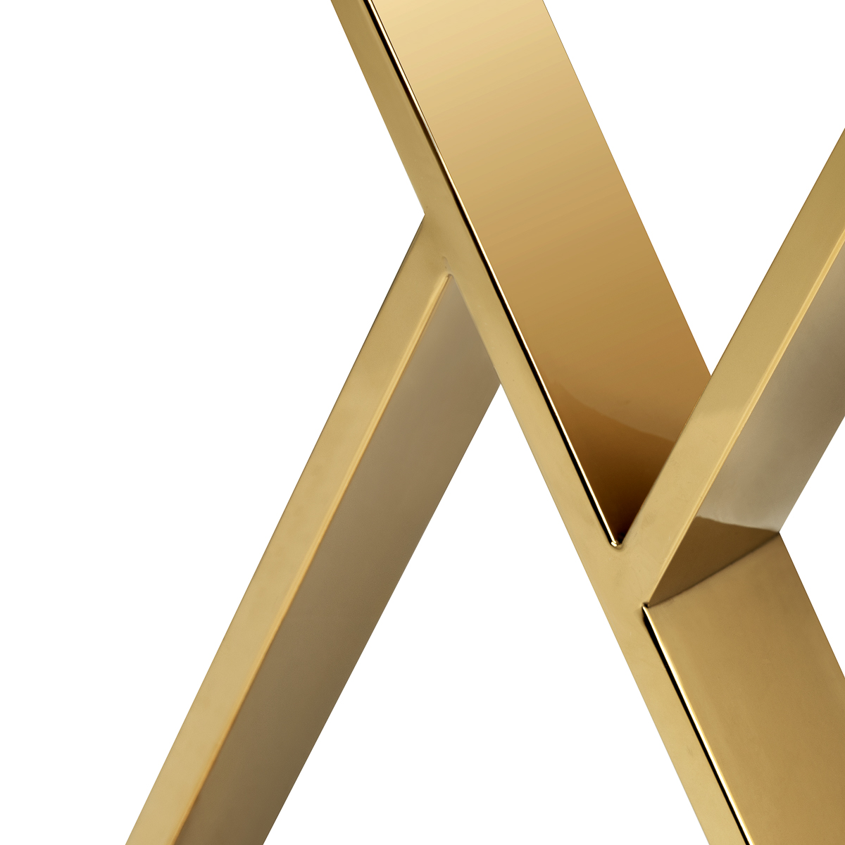 Biały blat na wysoki połysk oraz geometryczne, złote nogi nadają mu lekkości i nowoczesnego charakteru. Dzięki swojej lekkiej formie biurko sprawdzi się zarówno w kameralnych, jak i przestronnych wnętrzach, podkreślając ich ekskluzywny charakter. To doskonała inwestycja w estetykę oraz komfort codziennej pracy.