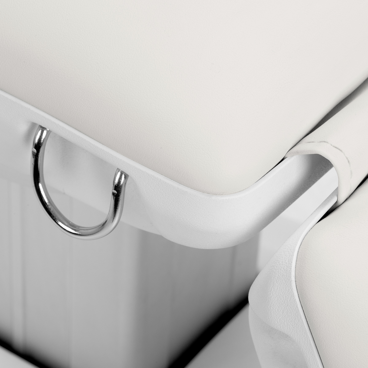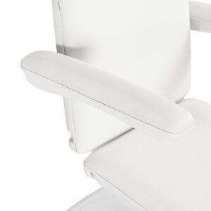 Zagłówek z możliwością wysunięcia o 20 cm pozwala dostosować fotel do wzrostu użytkownika, zapewniając stabilne podparcie głowy podczas zabiegów. Ruchome podłokietniki obracane w zakresie 180° ułatwiają zajmowanie miejsca na siedzisku oraz zapewniają wygodny dostęp osobie wykonującej zabieg. W razie potrzeby można je również łatwo zdemontować. Zastosowane udogodnienia podnoszą komfort użytkowania i wspierają ergonomiczną organizację pracy.
