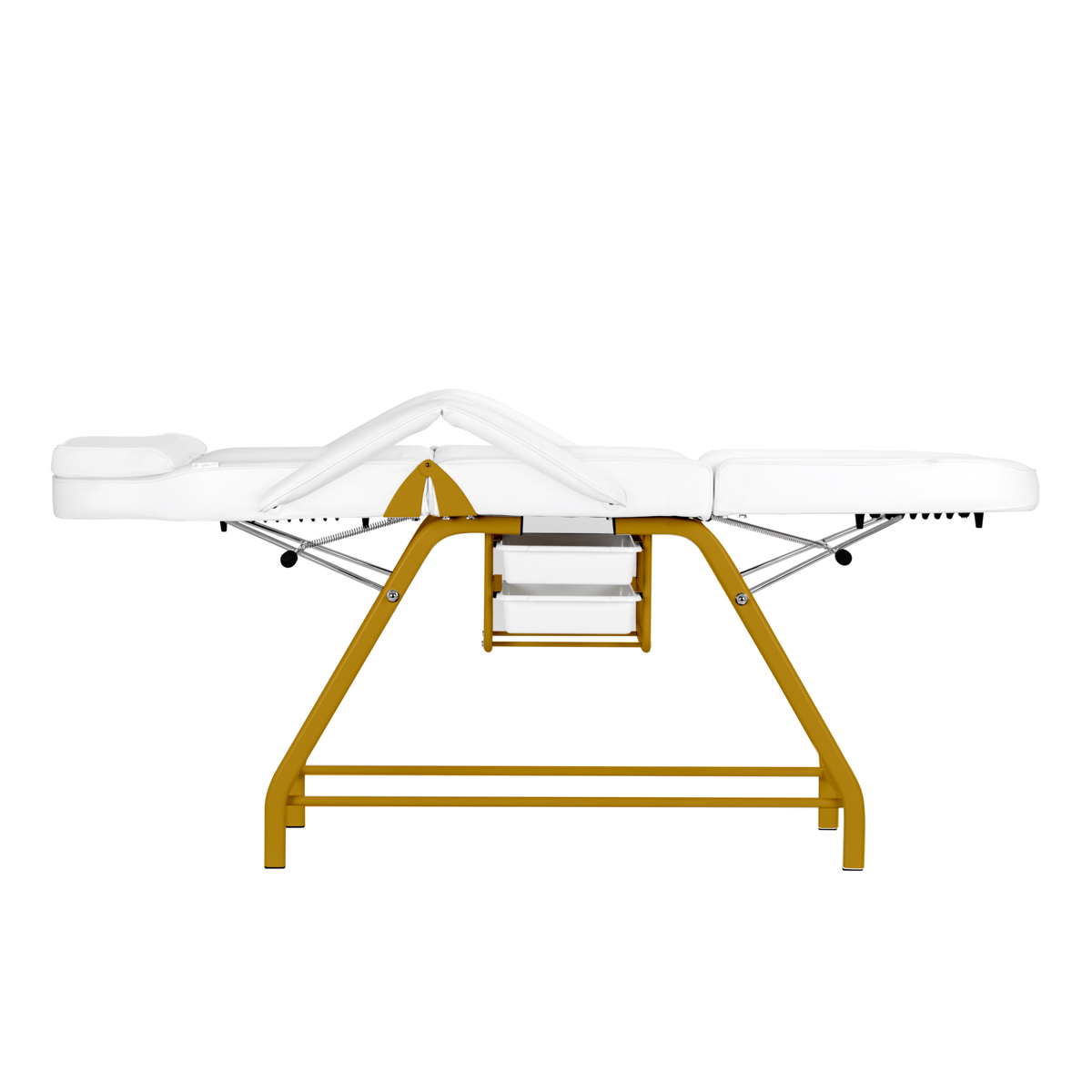 Fotel kosmetyczny 557G z kuwetami złoto biały