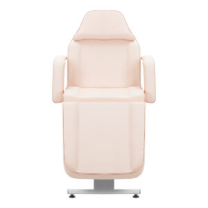 Stabilne, miękkie podłokietniki gwarantują użytkownikowi odpowiednie podparcie. Elementy te, dzielone w połowie, są ruchome, dlatego dobrze układają się przy zmianach pozycji oparcia, a dodatkowo mogą być w łatwy sposób zdjęte. Ukryty pod odpowiednio wyprofilowaną poduszką otwór w zagłówku sprawia, że fotel doskonale sprawdza się zarówno podczas zabiegów na twarz, jak i tych przeprowadzanych na plecach.