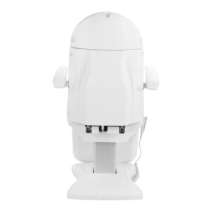 Zagłówek z możliwością wysunięcia o 20 cm pozwala dostosować fotel do wzrostu użytkownika, zapewniając stabilne podparcie głowy podczas zabiegów. Ruchome podłokietniki obracane w zakresie 180° ułatwiają zajmowanie miejsca na siedzisku oraz zapewniają wygodny dostęp osobie wykonującej zabieg. W razie potrzeby można je również łatwo zdemontować. Zastosowane udogodnienia podnoszą komfort użytkowania i wspierają ergonomiczną organizację pracy.