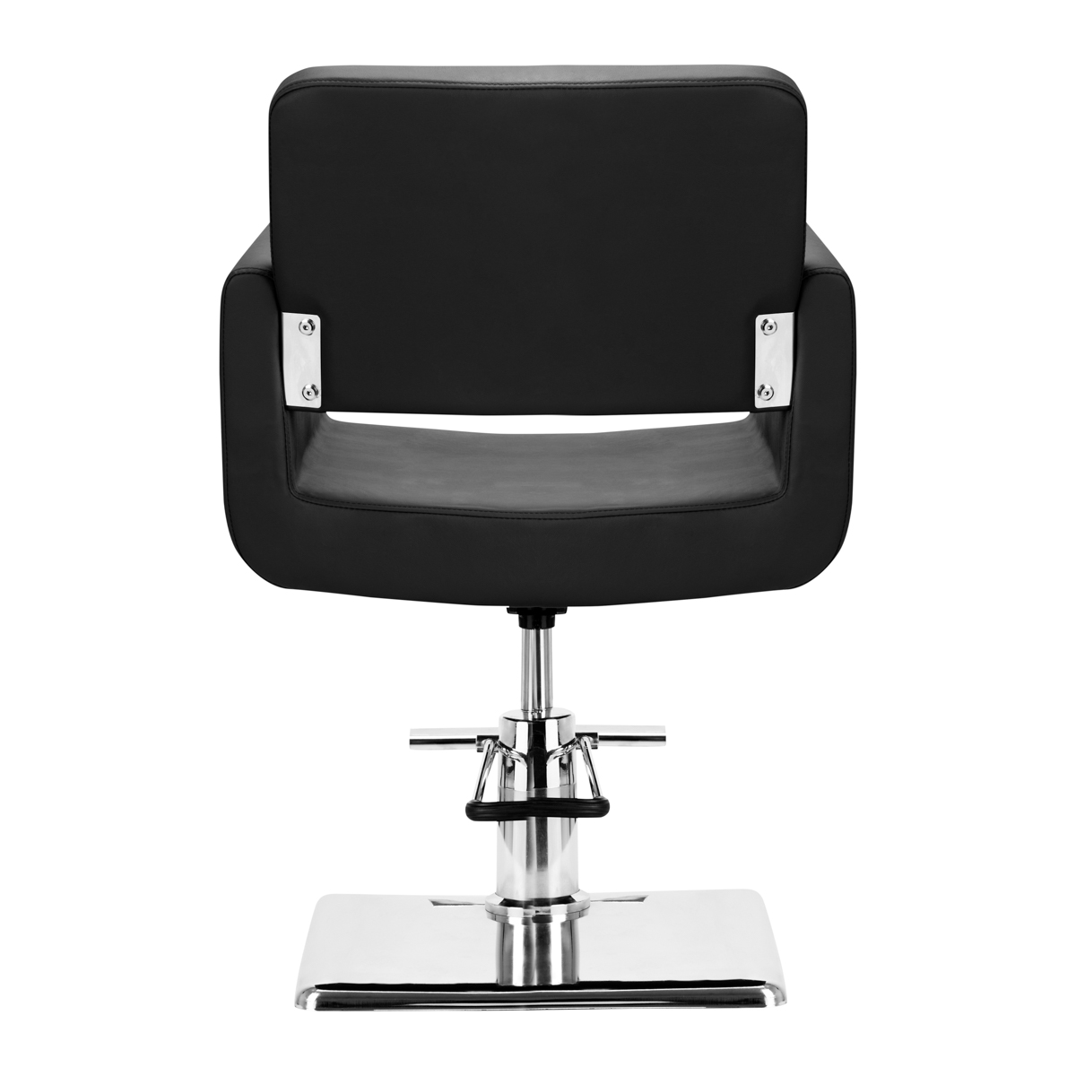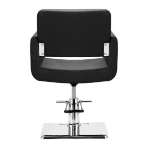 Nowoczesny fotel fryzjerski o wyjątkowym designie, idealnie pasujący do nowoczesnych salonów. Specjalnie wyprofilowany, by zapewnic klientowi wygodną pozycję podczas zabiegu. Regulowany w płaszczyźnie pionowej. Bardzo stabilnie wykonany. Obicie z wysokiej jakości gładkiej ekoskóry. Kolor czarny.