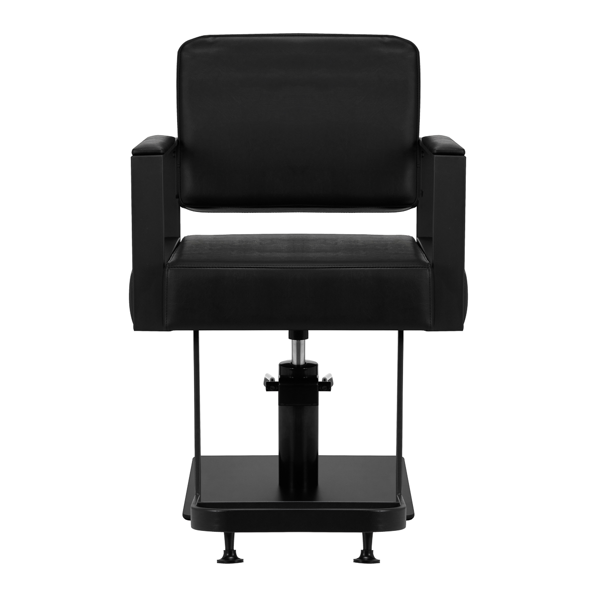 Wyposażenie fotela w mechanizm pełnego obrotu sprawia, że praca fryzjera staje się bardziej efektywna i wygodna. Solidna, płaska podstawa w kształcie kwadratu gwarantuje stabilność w trakcie użytkowania. Matowo wykończona, gładka powierzchnia nadaje elementowi elegancki wygląd i sprawia, że ten jest łatwy do utrzymania w czystości. Wygodne siedzisko z wypełnieniem z pianki zapewnia wysoki komfort użytkowania, nawet podczas wielogodzinnych zabiegów. Geometryczne, częściowo tapicerowane podłokietniki pozwalają na prawidłowe ułożenie barków klienta – sprawia to, że nie chowa głowy w ramionach ani się nie garbi – wyraźnie ułatwiając wykonywanie precyzyjnych zabiegów, w tym strzyżenia.