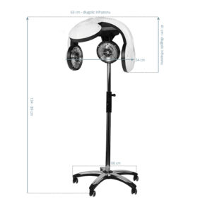 Infrazon jest to urządzenie służące do przyspieszania zabiegów chemicznych oraz pielęgnacyjnych na włosach. Infrazon do włosów to urządzenie które skraca czas zabiegów trwałej ondulacji, rozjaśniania, farbowania czy po prostu naniesienia maski oraz szybszego i lepszego wchłonięcia się jej we włosy. Infrazon znacznie skraca czas zabiegów oszczędzając tym samym czas fryzjera oraz klienta.Elektroniczna regulacja parametrów znacznie ułatwia pracę fryzjera.
