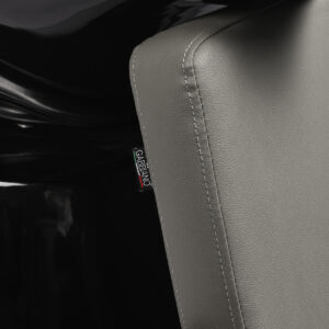 Minimalistyczny fotel o charakterystycznie zaokrąglonym siedzisku łączy prostotę formy z wysokim komfortem użytkowania. Oparcie o optymalnym kącie nachylenia wspiera naturalną pozycję ciała. Tapicerka wykonana z wysokiej jakości skóry syntetycznej w odcieniach szarości jest odporna na zużycie i łatwa do utrzymania w czystości. Nowoczesna linia mebla podkreśla elegancki charakter myjni oraz doskonale komponuje się z wystrojem salonu. W zestawie znajduje się kompletna armatura o matowym wykończeniu w odcieniach czerni, w tym bateria, słuchawka prysznicowa oraz dedykowane węże, aby zapewnić całkowity zestaw narzędzi do pracy.