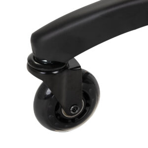 Regulacja wysokości siedziska w zakresie 56-77 cm pozwala specjaliście dostosować pozycję w trakcie wykonywania usług. Odpowiednio wyprofilowane na kształt siodła siedzisko wypełnione niepodatną na odkształcenia pianką gwarantuje użytkownikom wygodę i ergonomię pracy. Mechanizm pełnego obrotu sprawia, że praca staje się bardziej efektywna i wygodna. Mobilność zapewniają kółka Roll Speed z żelaznym rdzeniem i powłoką z poliuretanu (PU), które łączą płynność ruchu z wyjątkową odpornością na zużycie. Zastosowanie łożysk klasy ABEC-7 sprawia, że taboret porusza się łatwo, co znacząco ułatwia manewrowanie.