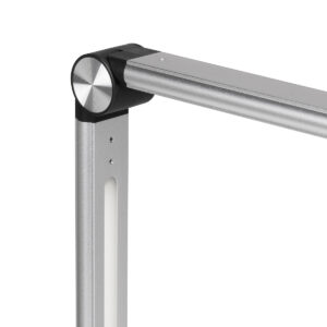 Prosta forma oraz unikatowy design w odcieniach srebra sprawiają, że lampa Glow ProLux zrobi wrażenie w każdym wnętrzu. Specyficzny wygląd oraz kształt nadają jej niekonwencjonalnego charakteru, a możliwość regulacji parametrów oświetlenia znacznie uefektywnia pracę. Dwa zawiasy umożliwiają złożenie lampy, co sprawdza się doskonale w przypadku usług mobilnych. Silikonowe nakładki na stopkach zwiększają stabilność i zapobiegają przesuwaniu się lampy podczas pracy, co daje poczucie pewności i komfortu użytkowania. Pomagają także chronić powierzchnie przed zarysowaniami. Zastosowane materiały sprawiają, że urządzenie jest trwałe oraz łatwe do utrzymania w czystości.