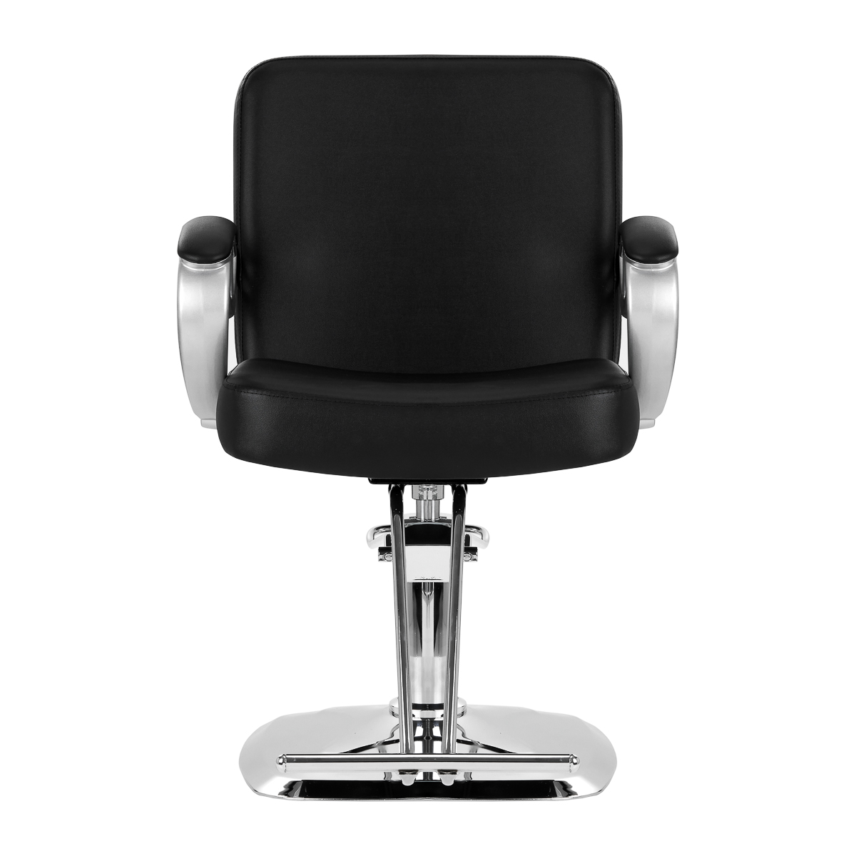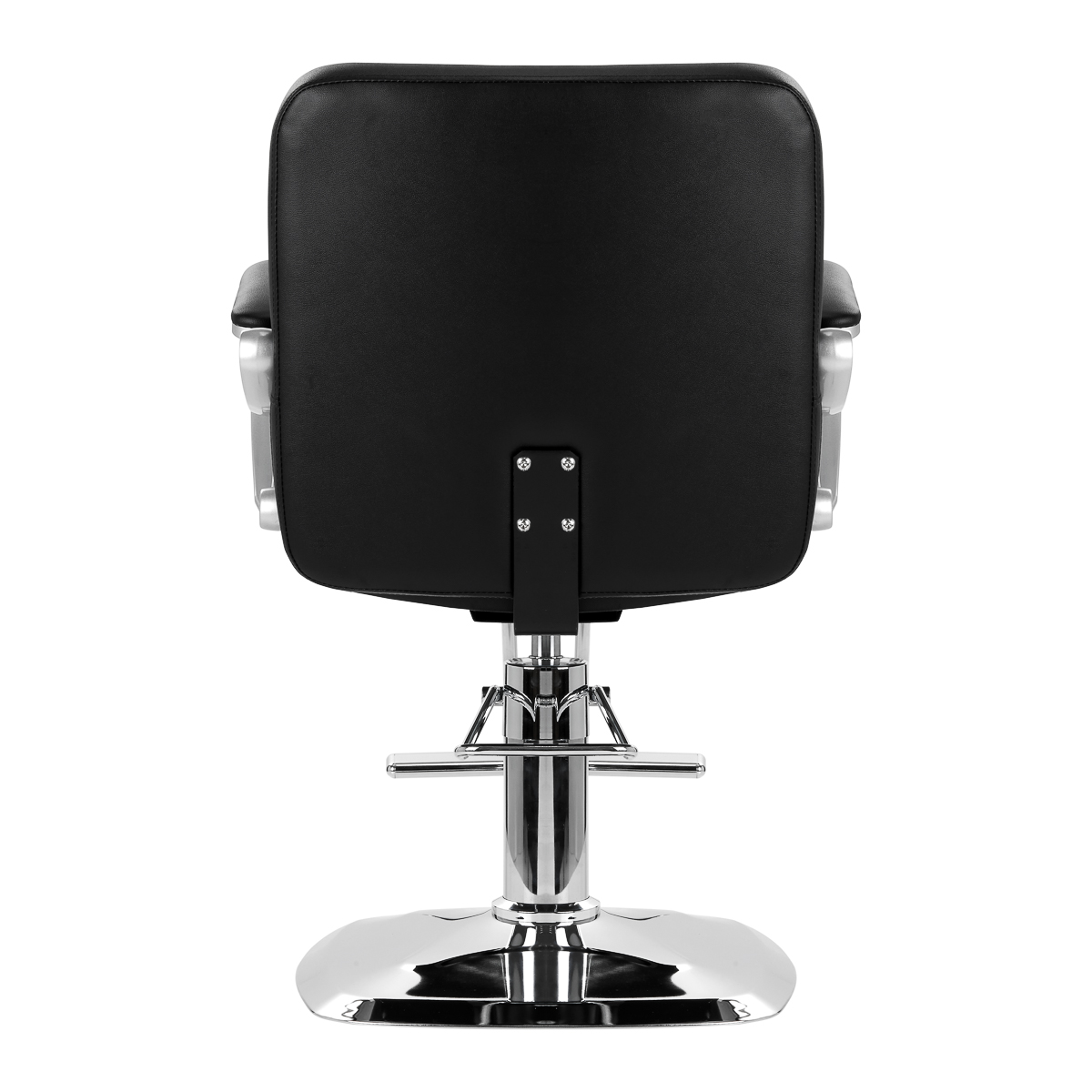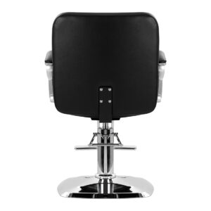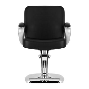 Solidna podstawa zapewnia stabilność w trakcie użytkowania, a jej powierzchnia o lustrzanym wykończeniu jest łatwa do utrzymania w czystości. Wygodne siedzisko wypełnione zostało trwałą pianką, by zapewniać wysoki komfort użytkowania, nawet podczas wielogodzinnych zabiegów. Częściowo tapicerowane podłokietniki są ciekawym wizualnie elementem, a dzięki odpowiedniemu wyprofilowaniu pozwalają na prawidłowe ułożenie barków klienta. Dzięki temu nie chowa on głowy w ramionach ani się nie garbi – co wyraźnie ułatwia wykonywanie precyzyjnych zabiegów, w tym strzyżenia. Wyposażenie fotela w mechanizm pełnego obrotu sprawia, że praca fryzjera staje się bardziej efektywna oraz wygodna.