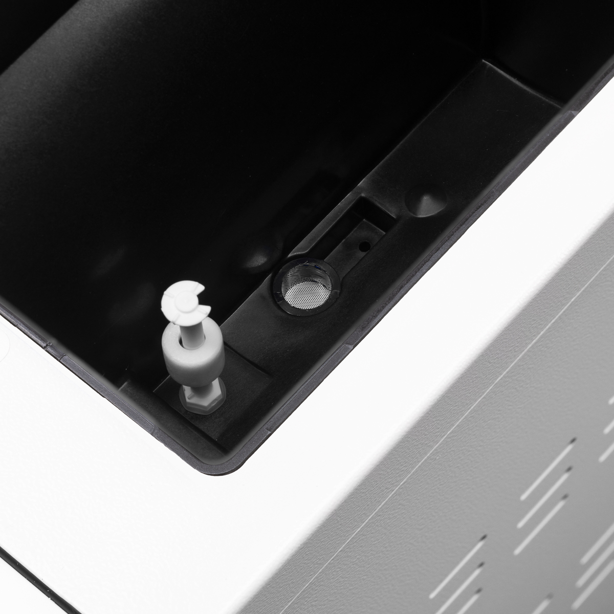 | Wbudowane zbiorniki na czystą i zużytą wodę | Zbiornik na czystą wodę jest przeznaczony na destylowaną lub dejonizowaną wodę, która posłuży do sterylizacji. Obecność zbiornika na zużytą wodę sprawia, że nie potrzebujemy pamiętać o zewnętrznym pojemniku. Odpływ znajduje się z przodu urządzenia. |