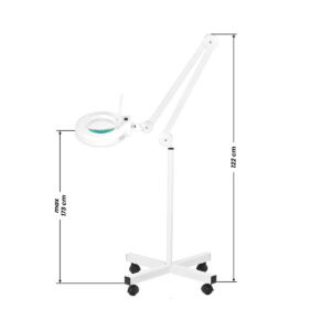 Lampa-Lupa 5 dioptrii, lampa ledowa na statywie czteroramiennym. Umożliwia oglądanie skóry w powiększeniu przy jednoczesnym dobrym oświetleniu. Stosowana również przy zabiegach manicure i pedicure, makijażu permanentnym, epilacji. Posiada dużą widoczność, szkło antyrefleksyjne i świetlówkę, która świeci białym jasnym światłem nie powodując bólu oczu przy dłuższej pracy. Idealnie nadaje się do gabinetów kosmetycznych, stomatologicznych, weterynaryjnych oraz znajduje zastosowanie
