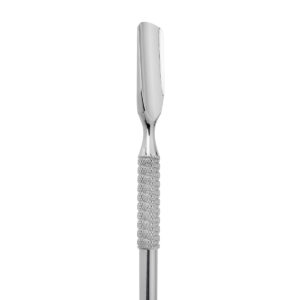 • Zaokrąglona łopatka doskonale sprawdzi się do odsuwania skórek. Jej wymiary pozwolą na dotarcie również do trudniej dostępnych miejsc. Profilowana końcówka jest oszlifowana w taki sposób, by skutecznie usuwać skórki, jednocześnie nie uszkadzając płytki paznokcia.
