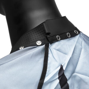 Produkt wykonany jest z czarnego wodoodpornego materiału, który pozwala na bezproblemowe czyszczenie i odpowiednio zabezpiecza przed wszelkiego rodzaju zachlapaniami. Dzięki uniwersalnemu rozmiarowi oraz możliwości dopasowania dzięki zatrzaskom przy szyi, sprawdzą się u każdego klienta, niezależnie od jego wzrostu, zapewniając komfort w trakcie przeprowadzanego zabiegu.