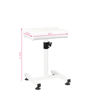 Podnóżek ma regulowaną wysokość, dzięki czemu może być pomocny podczas wykonywania wszelakich zabiegów, a w szczególności podczas przeprowadzania zabiegu pedicure.