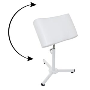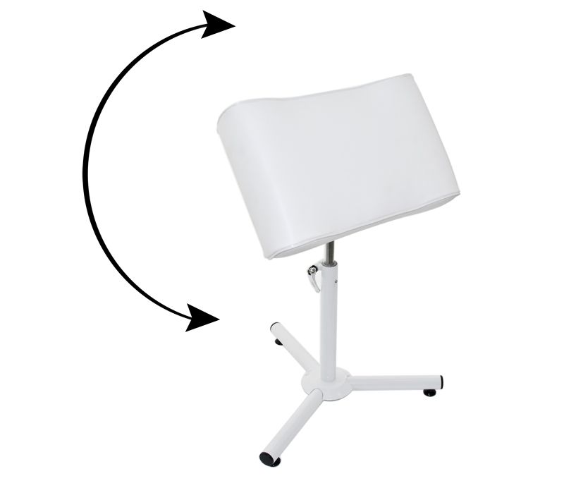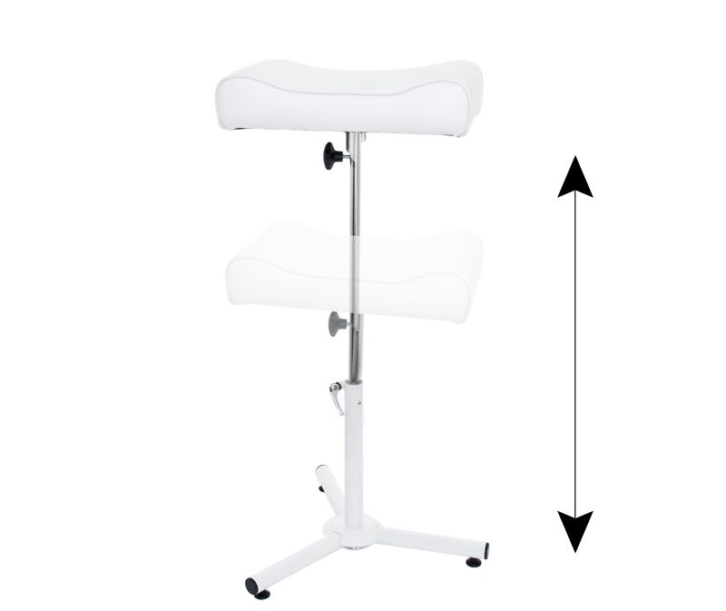 Podnóżek jest regulowany w pionie i ma regulowany kąt pochylenia poduszki, dzięki czemu jest pomocny podczas wykonywania wszelakich zabiegów nie tylko pedicure. Posiada również profilowaną dużą tapicerkę, dobrze trzymającą nogi.