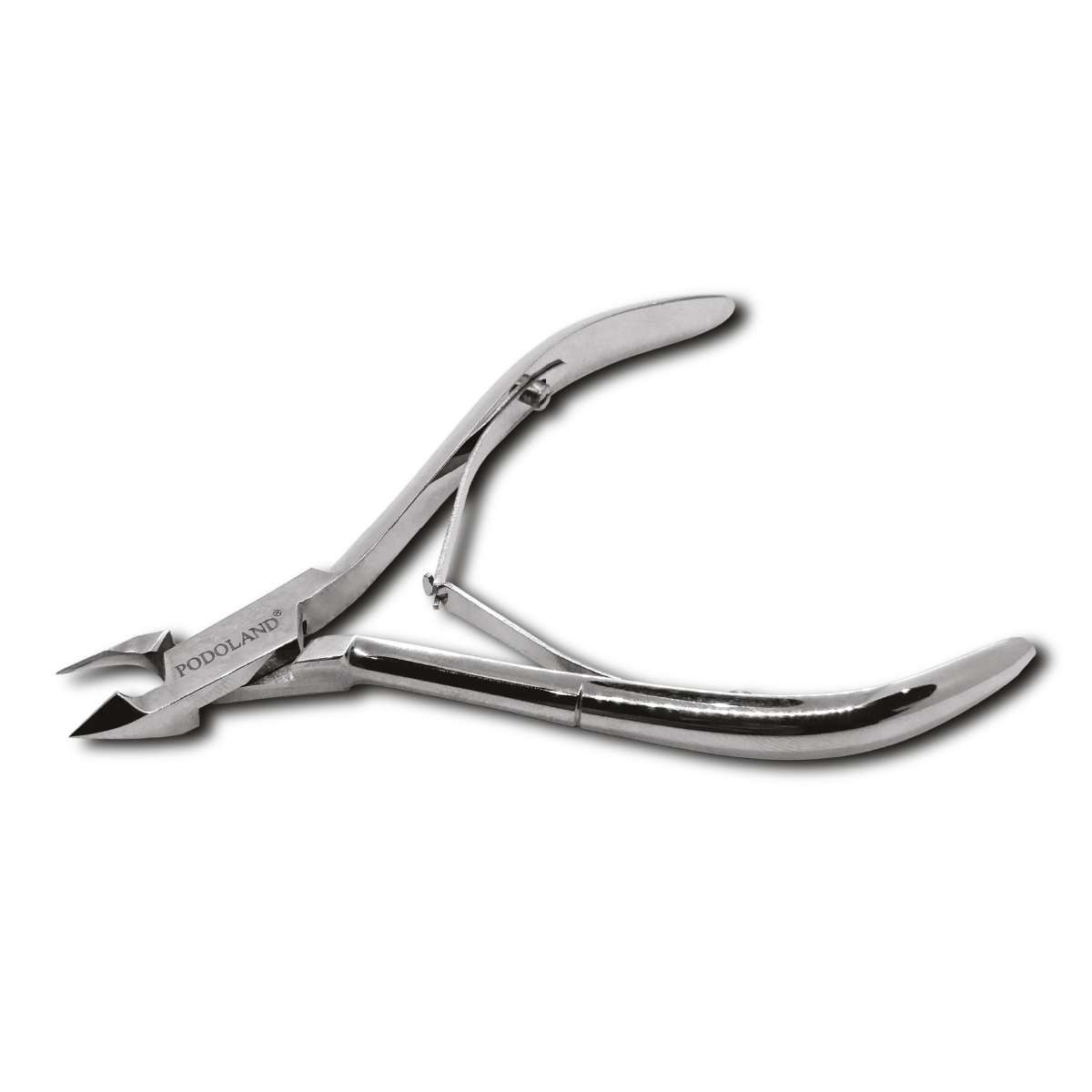 Cążki do usuwania skórek oraz głęboko osadzonych odcisków podpaznokciowych zostały wykonane z najwyższej jakości stali nierdzewnej. To wytrzymałe i precyzyjne narzędzie z ostrą powierzchnią tnącą (0,9 cm). Specjalna konstrukcja ostrza powoduje, że cążki znakomicie sprawdzają się zarówno w pracy przy stopach, jak i dłoniach. Model jest wyposażony w zabezpieczony dwusprężynowy mechanizm. Narzędzie może być sterylizowane w autoklawie. Cążki są polecane zwłaszcza do stosowania w gabinetach kosmetycznych i podologicznych.