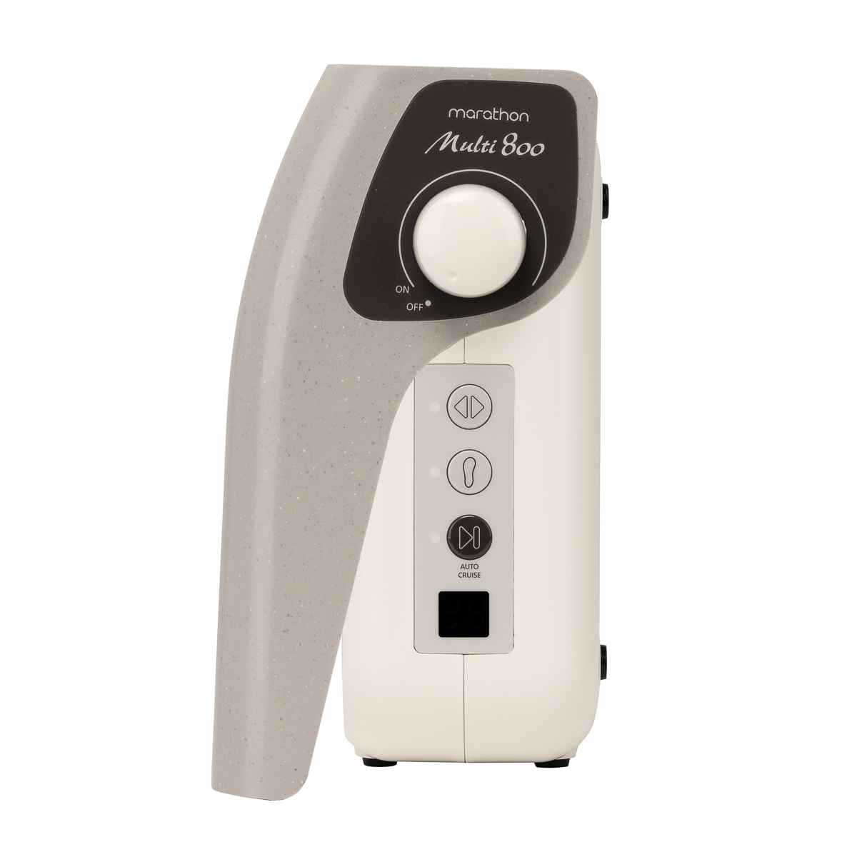Frezarka Saeyang Marathon MULTI800 łączy funkcjonalność z estetyką, spełniając oczekiwania nawet najbardziej wymagających profesjonalistów. Futurystyczna obudowa w odcieniach beżu i brązu, wzbogacona delikatnym nakrapianym wykończeniem, przyciąga wzrok. Zaokrąglone krawędzie oraz matowe wykończenie nadają frezarce profesjonalny wygląd, idealnie komponujący się z każdym salonem kosmetycznym. Frezarka została wykonana z wysokiej jakości materiałów, które są zarówno wytrzymałe, jak i łatwe do utrzymania w czystości, co przekłada się na trwałość oraz komfort użytkowania. Dodatkowe gumowane stopki gwarantują stabilność urządzenia i chronią powierzchnię przed zarysowaniami. Dzięki swojej funkcjonalności i estetyce frezarka nie tylko spełnia swoje zadanie, ale również stanowi stylowy element wyposażenia, podkreślając nowoczesny styl wnętrz.