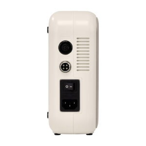Frezarka Saeyang Marathon MULTI800 łączy funkcjonalność z estetyką, spełniając oczekiwania nawet najbardziej wymagających profesjonalistów. Futurystyczna obudowa w odcieniach beżu i brązu, wzbogacona delikatnym nakrapianym wykończeniem, przyciąga wzrok. Zaokrąglone krawędzie oraz matowe wykończenie nadają frezarce profesjonalny wygląd, idealnie komponujący się z każdym salonem kosmetycznym. Frezarka została wykonana z wysokiej jakości materiałów, które są zarówno wytrzymałe, jak i łatwe do utrzymania w czystości, co przekłada się na trwałość oraz komfort użytkowania. Dodatkowe gumowane stopki gwarantują stabilność urządzenia i chronią powierzchnię przed zarysowaniami. Dzięki swojej funkcjonalności i estetyce frezarka nie tylko spełnia swoje zadanie, ale również stanowi stylowy element wyposażenia, podkreślając nowoczesny styl wnętrz.