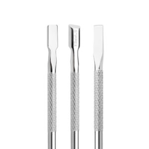 • Spłaszczone dłutko służy do ścierania naskórka oraz precyzyjnego odsuwania skórek, błonki. Sprawdzi się również przy usuwaniu pozostałości żelu czy akrylu z płytki paznokcia.