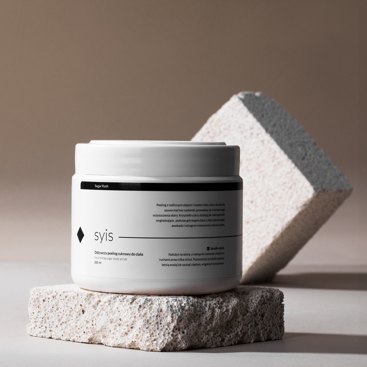 Syis Sugar Rash to peeling cukrowy, który łączy złuszczające właściwości kryształków cukru z pielęgnującym działaniem olejów roślinnych i masła shea. Delikatnie, ale skutecznie usuwa martwy naskórek, pozostawiając skórę gładką i oczyszczoną. Bogata w składniki aktywne formuła intensywnie wygładza, stanowiąc doskonały sposób na przygotowanie ciała do kolejnych etapów pielęgnacji.