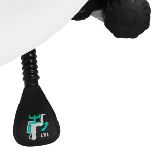 Możliwość regulacji wysokości siedziska w zakresie 50-64 cm pozwala specjaliście przybrać odpowiednią pozycję w trakcie wykonywania usług. Wyprofilowane oparcie, z możliwością wysunięcia o 20 cm, zapewnia doskonałe wsparcie pleców, niezależnie od wzrostu użytkownika. Mechanizm pełnego obrotu sprawia, że praca staje się bardziej efektywna i wygodna. Krzesło posiada również funkcję kołyski z możliwością blokady, co pozwala na ergonomiczne ułożenie ciała podczas pracy. Odpowiednio wyprofilowane na kształt siodła siedzisko wypełnione niepodatną na odkształcenia pianką gwarantuje użytkownikom wygodę i ergonomię pracy.