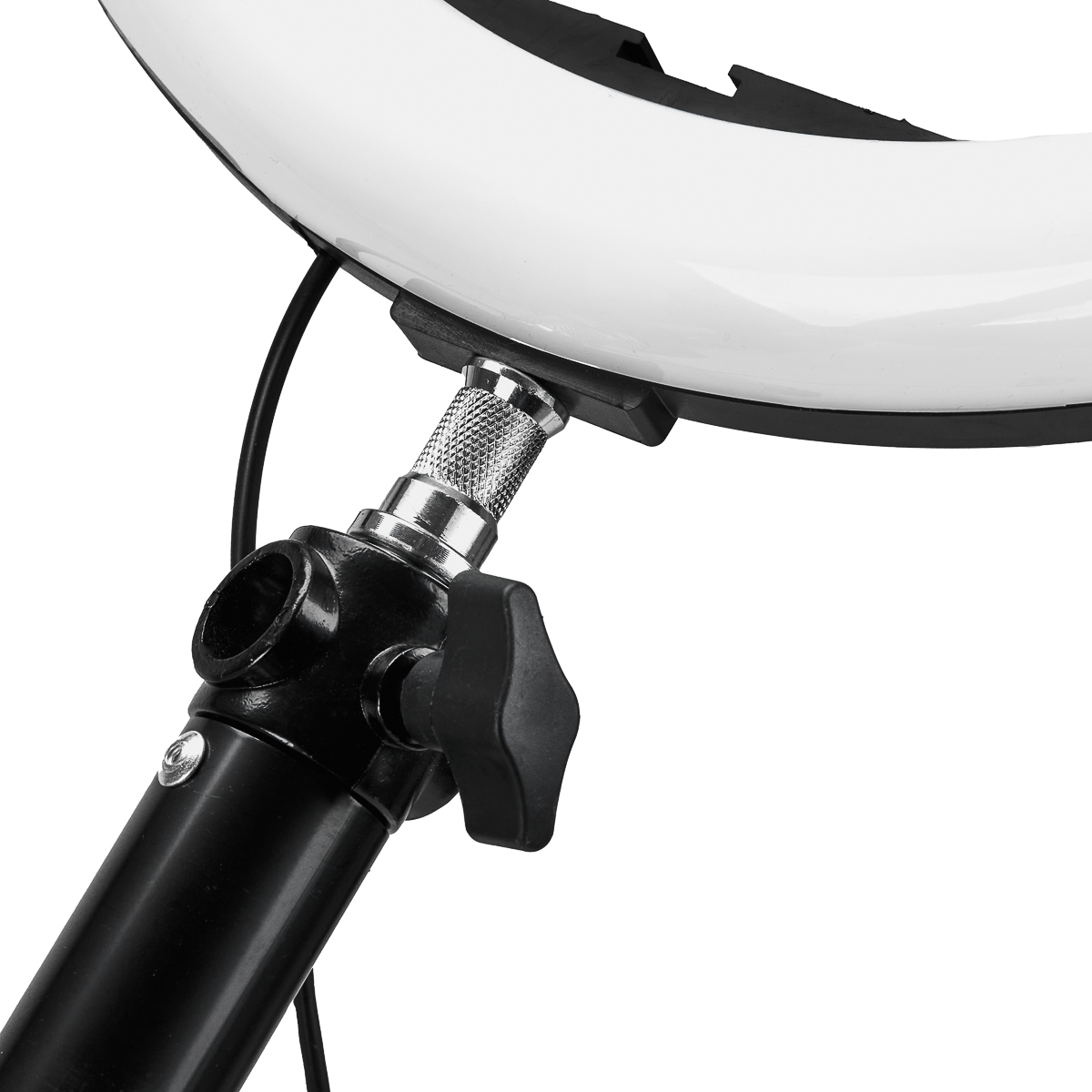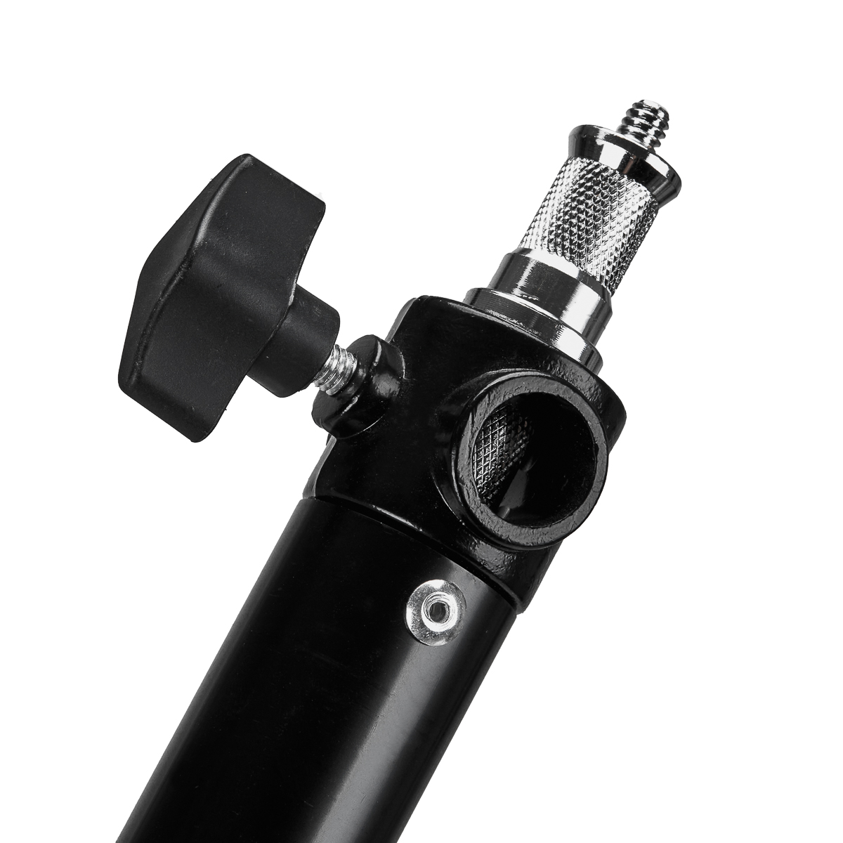 Regulowanej długości, stalowy uchwyt ścienny przeznaczony jest do lamp i ringów świetlnych z gwintami o średnicach 6 mm i 9 mm. Solidny wieszak pozwala dokładnie rozplanować oświetlenie i stabilnie umocować je nad stanowiskiem pracy.