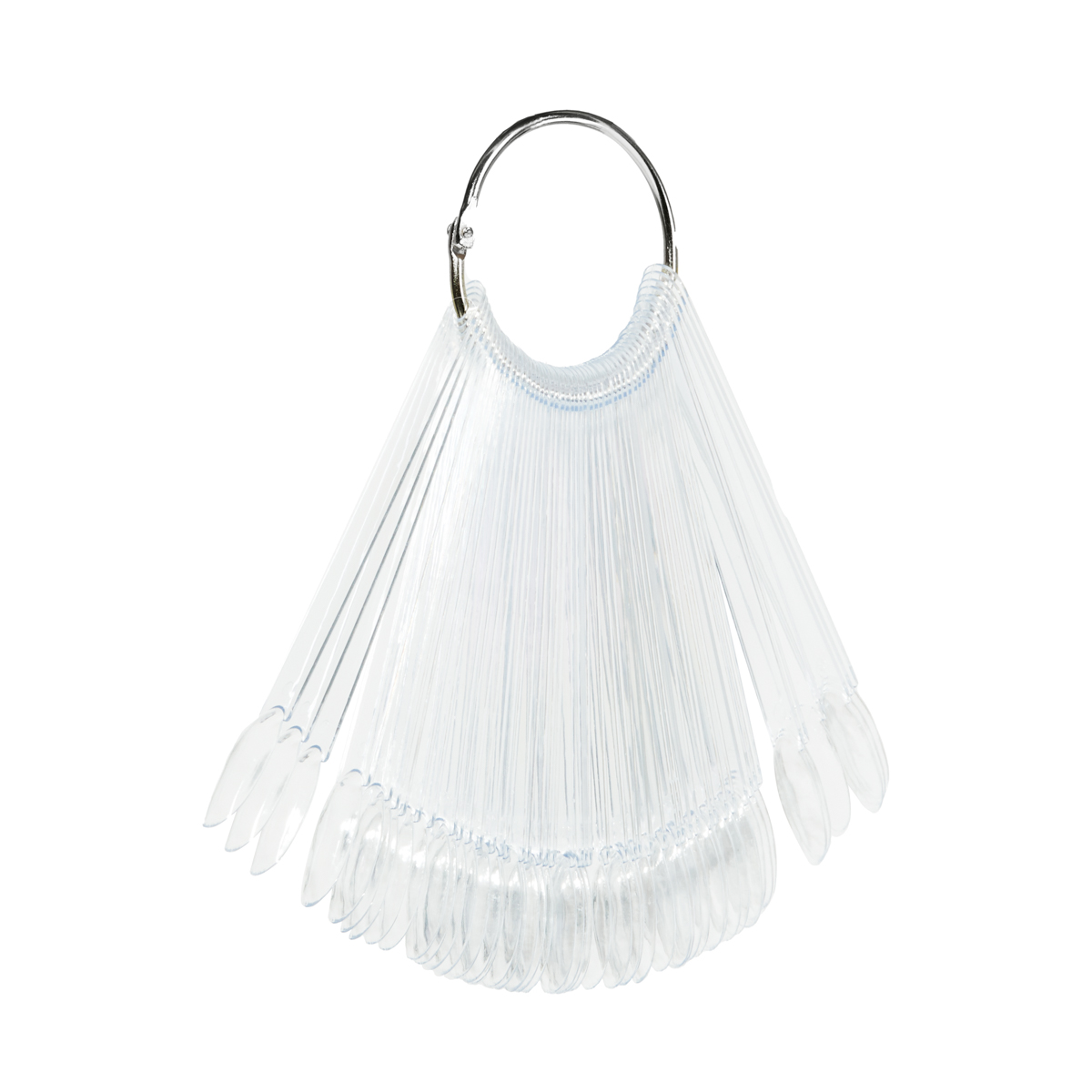 Transparentny wzornik pozwala na estetyczną prezentację wszelkich kolorów lakierów klasycznych oraz hybrydowych, pyłków czy żeli. Składa się z 50 pojedynczych tipsów o owalnym kształcie i w rozmiarze odpowiadającym prawdziwym paznokciom. Spięty jest praktycznym, rozpinanym kołem, które ułatwia przechowywanie całości. Każdy z tipsów wykonano z trwałego tworzywa sztucznego.