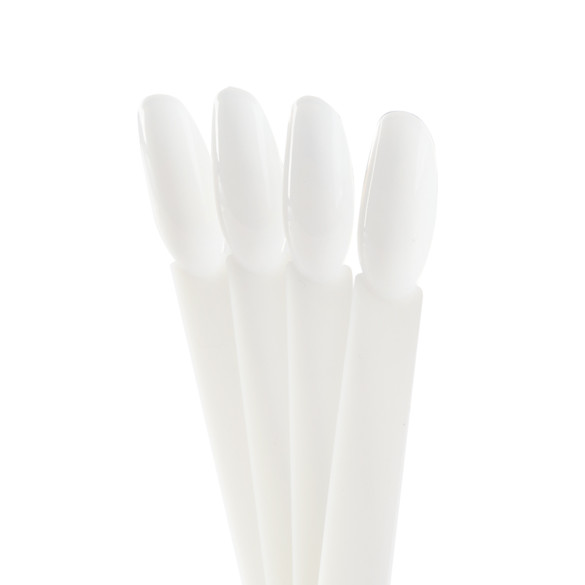 Wzornik w mlecznym kolorze pozwala na estetyczną prezentację wszelkich kolorów lakierów klasycznych oraz hybrydowych, pyłków czy żeli. Składa się z 50 pojedynczych tipsów o owalnym kształcie i w rozmiarze odpowiadającym prawdziwym paznokciom. Spięty jest praktycznym, rozpinanym kołem, które ułatwia przechowywanie całości. Każdy z tipsów wykonano z trwałego tworzywa sztucznego.